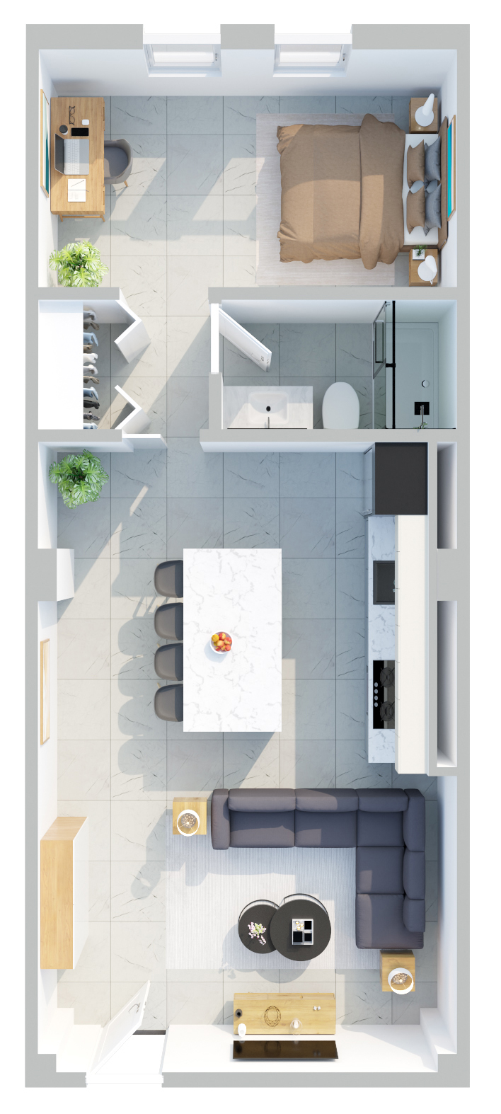 Experience modern downtown living at Sears Lofts, where expansive windows fill each residence with natural light and every detail is designed for comfort and style. Our thoughtfully crafted floor plans feature open layouts, contemporary finishes, and a bright, airy feel that makes every space inviting.